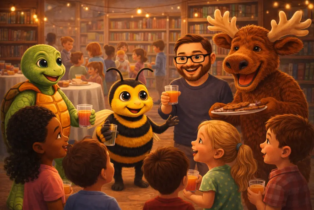 The Nils moose puppet is a creation of Folkmanis Puppets.
