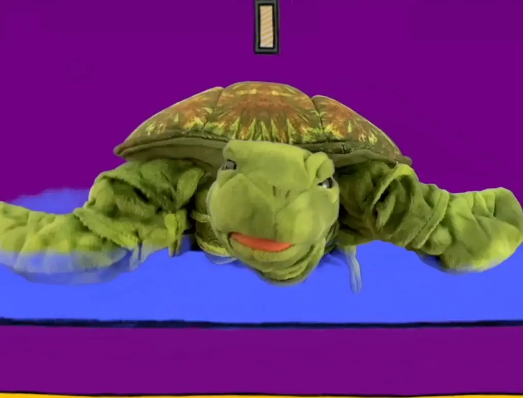 The Loretta green sea turtle puppet is a creation of Folkmanis Puppets.